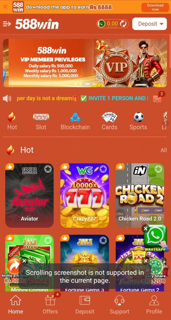 588 Win Game is an online gaming platform where users can play simple games and earn real money. It usually includes color prediction, number games, and other quick-result games that are easy to understand.